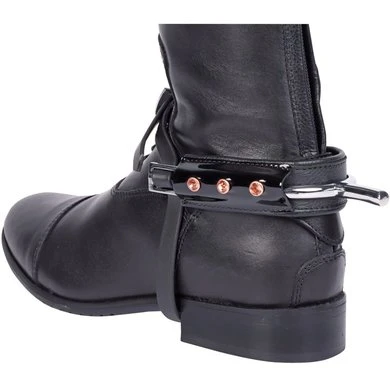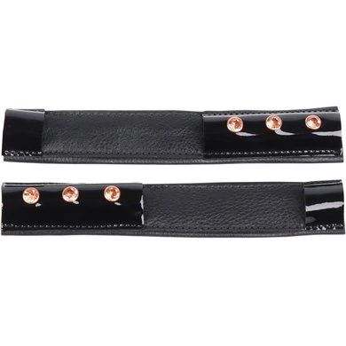 Sporenbeschermers houden de sporen op zijn plek beschermen de laars en spoor. Uitgevoerd in lakleder met chique rosegold kristallen.