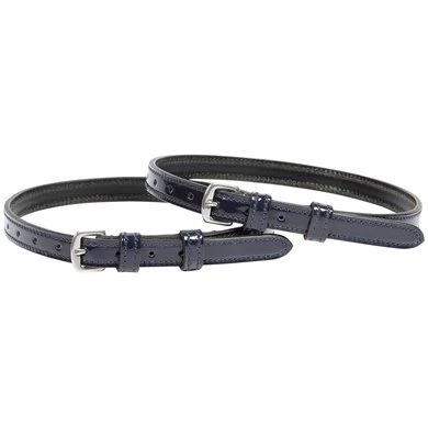 Laklederen spoorriemen met luxe, fijne gespsluiting. Lengte 47 cm.