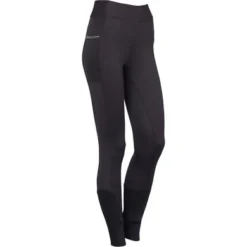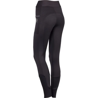 Paardrijlegging met twee zijzakken met ritssluiting en leuke diagonale pipings met prints, rondgenaaid zitvlak voorzien van een siliconen print voor extra grip in het zadel, flexlegs voor extra comfort in de rijlaarzen.