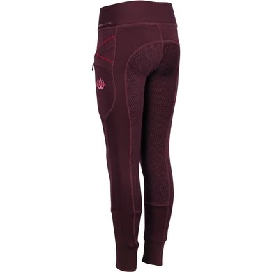 Paardrijlegging met contrasterende pipings, twee zakken met ritssluiting, rondgenaaid zitvlak voorzien van een siliconen print voor extra grip in het zadel, flexlegs voor extra comfort in de laarzen, LouLou logo aan de linkerkant.