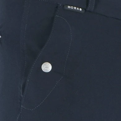 Jodhpur broek met steekzakken met drukknoop voor en 4/4 stretch leren inzet.