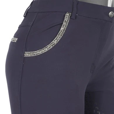 Een bestseller rijbroek uit hoogwaardige technische stof in een exclusieve, stijlvolle glitter-versie. De Nicola is een elegante rijbroek met een flatterende pasvorm gemaakt van zeer technische Super X-stof met waterafstotende vochtregulerende, ademende en verkoelende eigenschappen. Glittertape op achterste riemlussen en op de voor- en achterzakken, en de subtiel geprinte siliconen zitvlak delen maken van deze rijbroek een must have, zowel voor casual rijden als voor show. De broek is er in maten 128-46 en komt in 4 standaardkleuren, met toevoeging van een nieuwe kleur bijpassend bij de meest recente seizoenscollectie.