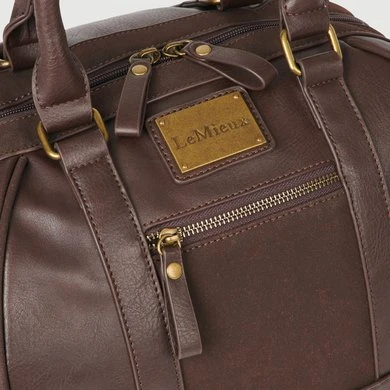 Luxe PU lederen hoedentas met buitenvakken met rits en faux suède details.