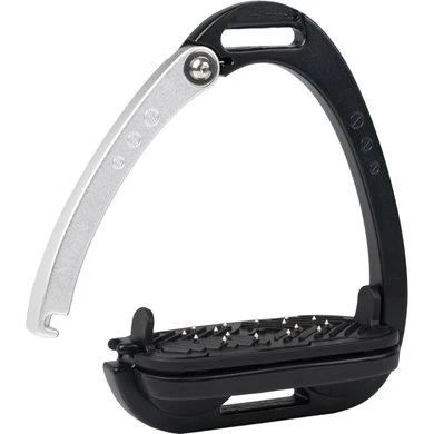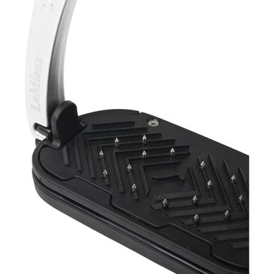 De voetplaat wordt ondersteund door een dubbel balans systeem dat het gewicht gelijkmatig verdeelt over de stijgbeugel. Het zwaartepunt van het frame is verzonken, waardoor een 45º naar buiten wordt gestimuleerd. Dit maakt het voor de ruiter gemakkelijker om de optimale hoek voor de voet te vinden en een verloren stijgbeugel terug te krijgen.