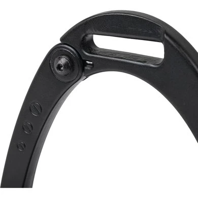 De geïntegreerde veiligheidsarm heeft een tweetraps ontgrendelingssysteem, waardoor onbedoeld openen wordt voorkomen. Wanneer er druk wordt uitgeoefend op de arm van de stijgbeugel, laat de arm los waardoor de voet uit de stijgbeugel kan komen en wordt voorkomen dat de voet vast komt te zitten. De uitbreekkracht van de stijgbeugelarm = 36N (gelijk aan 3,62kg), wat genoeg weerstand biedt om te voorkomen dat de beugel onbedoeld opengaat, maar zal veilig loslaten als de ruiter valt.