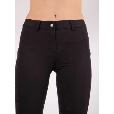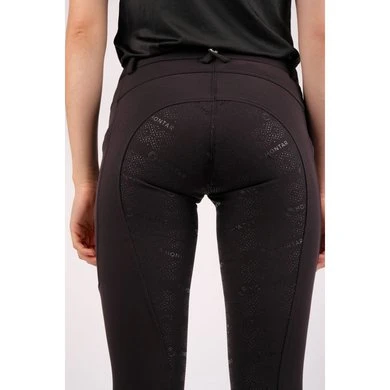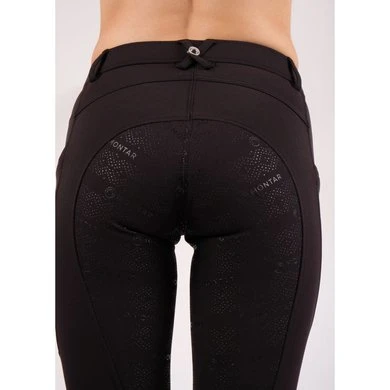 Schoon en eenvoudig, de minimalistische look van deze Angela rijbroek krijgt een mooie draai met logo’s in reliëf op de zakken. De logo’s zijn direct in de stof gemaakt voor een elegante look zonder stiksels. De Yati-stof heeft een premium uitstraling, duurzame elasticiteit en 360 graden flexibele ondersteuning. Yati helpt je droog te blijven bij je maximale inspanning. Op de dijen zitten twee diepe smartphone-zakken. De siliconenprint is ontworpen met Montar-logo’s en kleine stippen in een prachtig visueel patroon. De prachtige details zorgen voor een premium look die klaar is voor dagelijks gebruik in de stal.