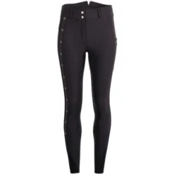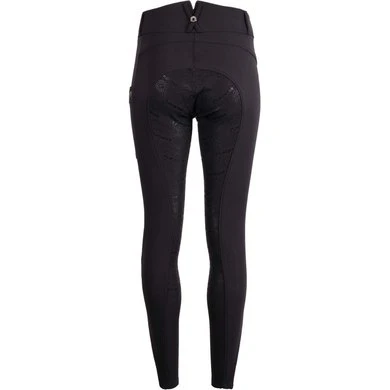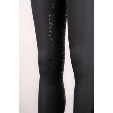 De strakke en eenvoudige look van deze rijbroek krijgt een sportieve twist met een Montar-logoband langs het rechterbeen. Aurora Yati highwaist rijbroek heeft twee knopen en is voorzien van een grafisch siliconen patroon. De elastische Yati-stof heeft veel eigenschappen, zoals 360 graden flexibiliteit en duurzame elasticiteit. Yati voert zweet af voor sneldrogend comfort. De rijbroek heeft één dijbeenzak, perfect voor je smartphone.