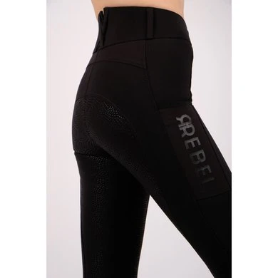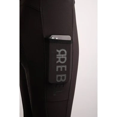 Klassiek EN stijlvol! Onze nieuwe Rebel highwaist is er in een bijgewerkte versie met nieuwe smartphonezakken. De rijbroek is voorzien van een nieuwe mooie fullgrip siliconen en is gemaakt van een comfortabele stof om de beste rijervaring te geven. Bij de enkels zitten lycra driehoeken voor een goede pasvorm op het onderbeen. Dit klassieke ontwerp heeft een ton sur ton logo op de rechterzak. Rebel verveelt nooit!