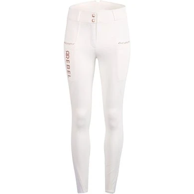 Rebel rijbroek met prachtige roségouden details! Rebel rijbroek met roségouden kristallen op de zakken en een prachtig roségouden Rebel-logo op de rechterzak. De rijbroek is er in vele kleuren, verbazingwekkend zachte stof en met een prachtig patroon met volledige grip of kniegrip. Met een lycra-driehoek bij de enkels zodat ze perfect in je laarzen passen. Rebel verveelt nooit!