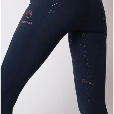 Colene panty met roségouden details op de tailleband. Breng ademend comfort naar een hoger niveau met een rekbare, vochtafvoerende stof. De stof is een technische stof die ervoor zorgt dat de panty perfect in vorm blijft en ondersteuning geeft terwijl hij er toch sportief uitziet. De rijbroek heeft twee dijbeenzakken voor je smartphone en glinsterende details op de zakken.