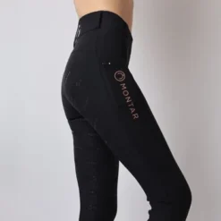 De mooiste hybride pull-on paardrijlegging van dit seizoen. Michelle pull-on rijbroeken zijn een fantastische combinatie tussen onze elastische en zachte rijbroeken en onze klassieke rijbroeken met v-uitsnijding in de taille en elegante riemlussen. Met een in het oog springend roségouden Montar-logo en sterke siliconen volledige grip, zijn ze gemaakt voor langdurig comfort. Michelle paardrijtights voeren zweet af om je droog te houden en bieden je voldoende ondersteuning met flexibele en elastische stof. Het gestroomlijnde ontwerp zorgt voor een getailleerde pasvorm die gemaakt is om met je mee te bewegen tijdens het rijden. 85% polyamide, 15% elastaan