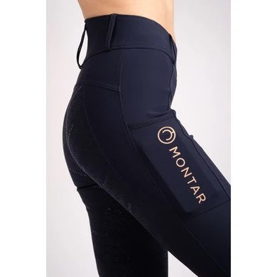 Michelle pull-on paardrijtight voor junioren geeft je look net dat tikkeltje extra met roségouden logo en is een super comfortabele paardrijlegging met een brede elastische taille. Ze behouden hun vorm en zijn gemaakt van hoogwaardige stof. Met twee zakken op de dijen. In de zak zitten siliconen stippen die voorkomen dat de smartphone eruit valt tijdens het rijden. De stof is super zacht en rekbaar en voelt aan als een mix tussen onze junior rijbroek en junior panty.