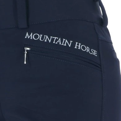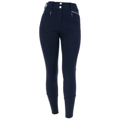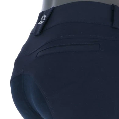 Hoge taille rijbroek met fullseat Clarino grip. Voorzakken met ritssluiting. Flexibele manchet aan de onderkant.