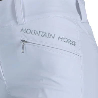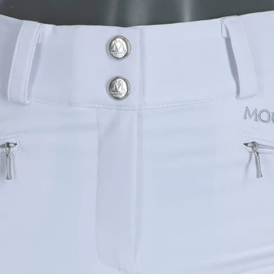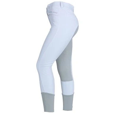 Hoge taille rijbroek met fullseat Clarino grip. Voorzakken met ritssluiting. Flexibele manchet aan de onderkant.