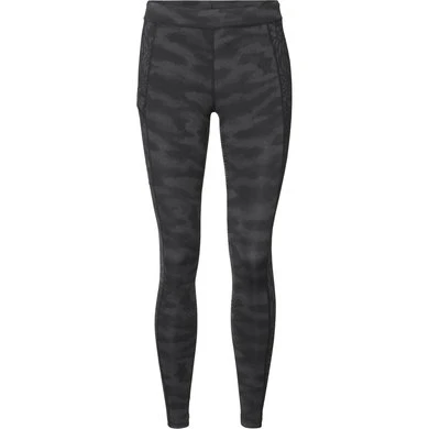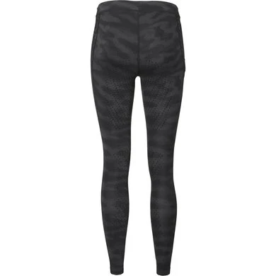 Sneldrogende technische panty met volledige stretch. Zachte elastische wachtband met extra trekkoord. All-over patroon zwart op zwart.