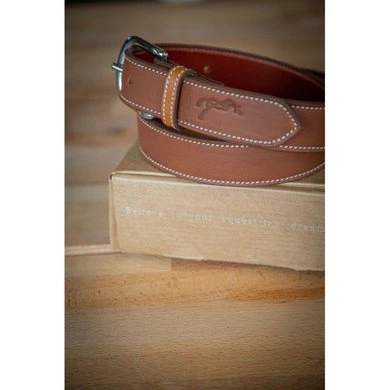 Leren riem van Pénélope, met ons logo in reliëf op het uiteinde van de riem. Alleen verkrijgbaar in cognac leder met zilverkleurige gesp.Samenstelling : 100% rundleer Gespen 100% roestvrij staal