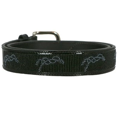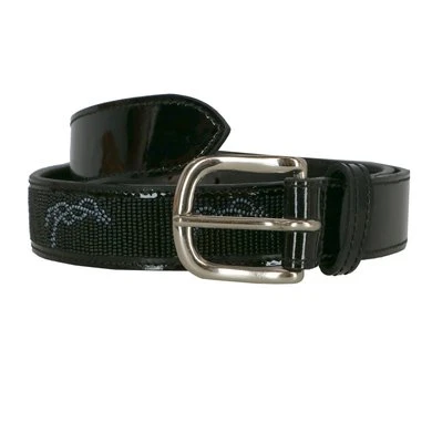 Penelope leren riem met Pénélope logo gemaakt van kralen. Zilverkleurige gesp.