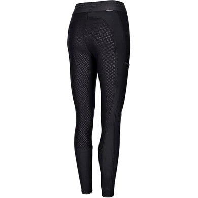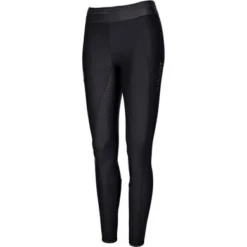 De Pikeur JULI Athleisure FG rijbroek is gemaakt van een superelastische en functionele stof die zacht aan de binnenkant is. De rijbroek is voorzien van een 3/4 grip zitvlak in dezelfde kleur als het buitenmateriaal en heeft een middelhoge taille die 4 cm lager is (taillehoogte & tailleband) in vergelijking met de GIA Athleisure FG. Door de elastische tailleband met verweven Trens Bit Lurex hebben de JULI rijbroeken een maximaal draagcomfort. Op het bovenbeen bevindt zich een grote zak voor een mobiele telefoon met een Lurex-rolbandrand van Trens, evenals een PIKEUR Strass-transfer. De JULI rijbroek heeft een smalle pasvorm en loopt vanaf de knieën gelijkmatig naar beneden. Een kleine siliconen vlag van PIKEUR Atheleisure bevindt zich aan de achterkant van de rijbroek. De buitenstof draagt bij aan een mooie beensluiting met Lurex rolbandrand.
