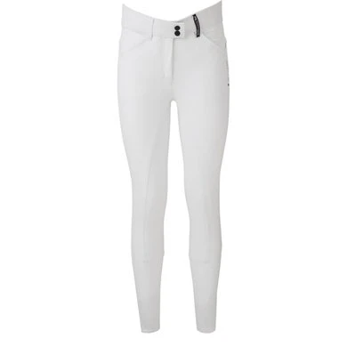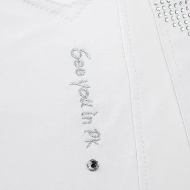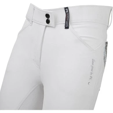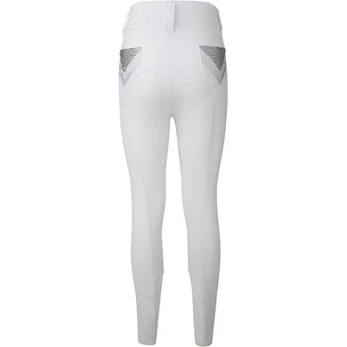 Deze technische rijbroek met een speelse look is voorzien van een wat hogere band, twee steekzakken aan de voorzijde en twee zakken aan de achterzijde. De broek bevat een speciaal motief van pailletes op de achterzakken en een leuke print op de voorzijde. Dit model is uitgevoerd in drie verschillende kleuren, en bevat een siliconen zitvlak of siliconen kniegrip.
