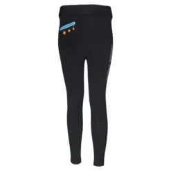 | Kinderrijbroek met een elastisch tailleband en één voorzak met rits die diep genoeg is voor de mobiele telefoon. Op de voorzijde en op de dij staat divers artwork. De rijbroek heeft een volledig siliconen zitvlak. : Productspecificaties: : – Junior rijbroek : – Volledig elastische tailleband, één schuine voorzak met rits diep – Diverse artwork op voorzijde en over dij – Volledig siliconen zitvlak : Specificaties :- :Maattabel |