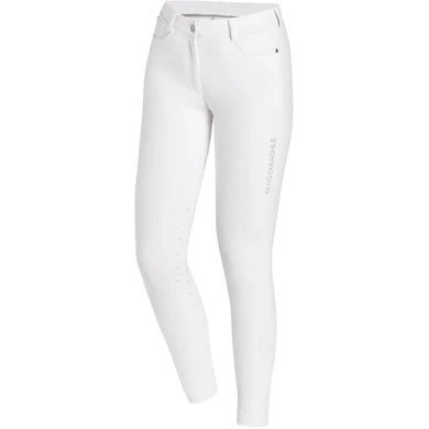 Ademend, flexibel en toch stabiel van vorm: de damesrijbroek Livia KG van Schockemöhle Sports overtuigt door maximale functionaliteit. De stretchstof is vochtafvoerend en biedt UV-bescherming. Ook handig: de ronde vakjes met een extra klein muntzakje. De kniegreep zorgt voor een goede ondersteuning in het zadel. Een strass-logo op het linkerbeen en nepzakken versierd met een glitterband aan de achterkant laten sportieve ruiters stralen!