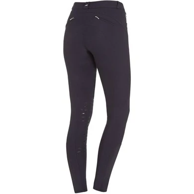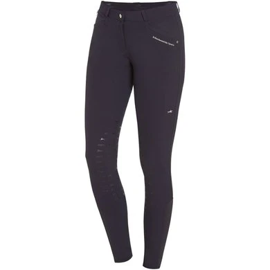 De duurzame damesrijbroek Cindy FS/ Loretta KG van Schockemöhle Sports is een betrouwbare metgezel in het zadel. Ze zijn geschikt voor de dagelijkse training, maar slaan ook een goed figuur op paardenshows. Het siliconen full seat / knee grip zorgt voor een veilig gevoel te paard, daarnaast is het hoogwaardige materiaal ademend. Maar deze rijbroek scoort niet alleen met zijn functionele kenmerken, maar kan ook overtuigen met zijn sportief-elegante look. Echte eyecatchers zijn het geborduurde logo op de achterste riemlus, de logoklinknagels op de zakken en de gebogen pasnaad, die er tegelijkertijd bijzonder flatterend uitziet. Nog meer draagcomfort wordt gegarandeerd door de elastische manchetten aan de zoom.
