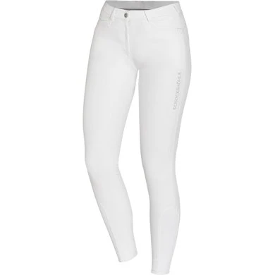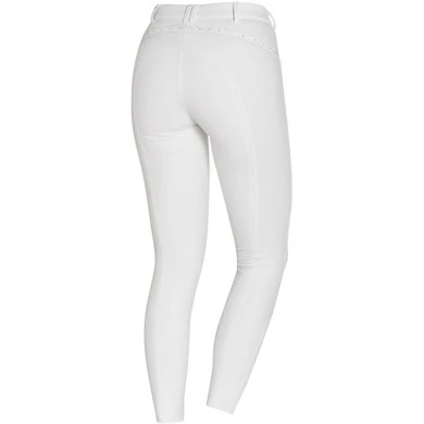 Met de damesrijbroek Summer Bea FS/ Summer Daliah KG van Schockemöhle Sports zijn de temperaturen welkom! De lichtgewicht, ademende stof is erg comfortabel om te dragen op warme zomerdagen, omdat het vochtafvoerend is – zo kun je je te paard in het zweet werken zonder bang te hoeven zijn dat het draagcomfort afneemt. Bovendien beschermt de geïntegreerde UV-bescherming de huid tegen fel zonlicht. De siliconen full seat/ knee grip is niet alleen trendy, maar biedt vooral stevige steun in het zadel. Modieuze accenten worden ook geleverd door de kleine strass-versieringen, die in dezelfde kleur als de rijbroek worden gehouden. Een gebogen pasnaad flatteert ook het figuur.