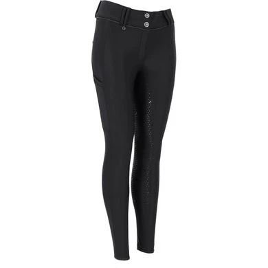 Met de vrouwelijke winterrijbroek Winter Carla FS Style van Schockemöhle Sports zijn koude benen voortaan nooit meer een realiteit op stal, zelfs niet bij de laagste temperaturen. De rijbroek is gemaakt van zeer zacht materiaal, dat van binnen geborsteld is en daardoor bijzonder gezellig. De rijbroek Carla FS Style is voorzien van een siliconen print op het zitvlak en zorgt zo voor een perfecte grip in het zadel. Modieuze blikvangers zijn de biezen op de tailleband, strass-inzetstukken op de gsm-zakken en het tonale strass-logo aan de linkerkant. De winterrijbroek is uiteraard elastisch en past zich daardoor optimaal aan de lichaamsvorm aan. • vrouwelijke winterrijbroek