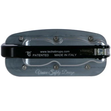 Dankzij het Tech Stirrups veiligheidsmechanisme moet de voet bij een val het bewegende deel open krijgen, waarna dit deel automatisch teruggaat naar de gesloten positie.