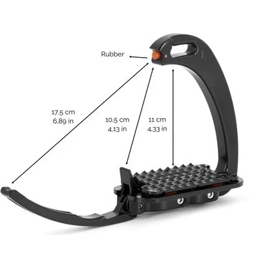 De Venice Pony Dressage Plus stijgbeugels zijn voorzien van 4 schokabsorberende inzetstukken waardoor de stijgbeugel de natuurlijke beweging van de voet volgt, waardoor de prestaties van de ruiter verbeteren en het comfortgevoel onbetaalbaar is.