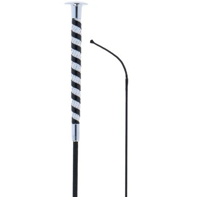 Glasvezel kern bekleed met gevlochten nyon en metalen dop. Dun handvat met afwisselend ingelegde strass en pvc spiralen.