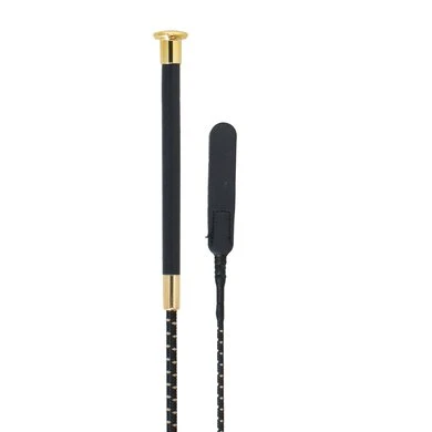 Glasvezel middenstuk met bekleed met gevlochten nylon. Handvat van generfd pvc. Lange open, lederen flap. Vermessingde metalen knop.