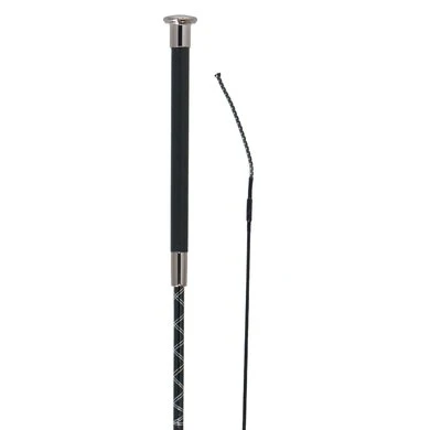 Middenstuk van glasvezel bekleed met vinyl, zwart antislip handvat van plastic, metalen knop.