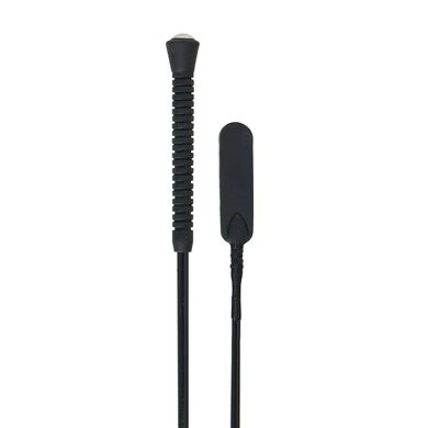 Antislip handvat van rubber, metalen knop, lange open lederen flap.