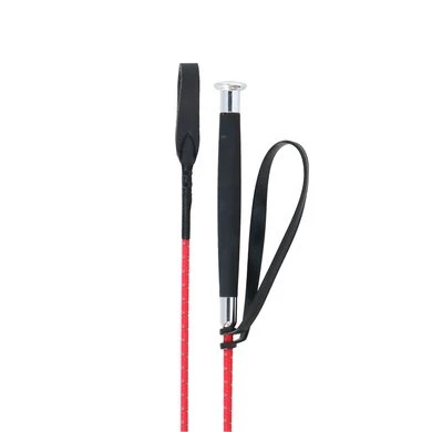Glasvezel rijzweep bekleed met gevlochten nylon met grijs reflecterende draad, afneembare plastic polslus. Gebogen handvat van polyurethaan met een zeer zacht gevoel. Fijn gesloten lederen flap.